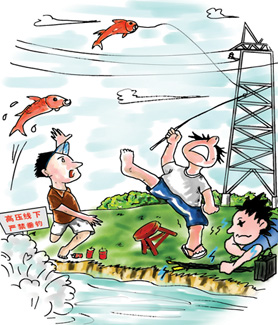 ● 不能在有電線經(jīng)過的魚塘邊釣魚。
