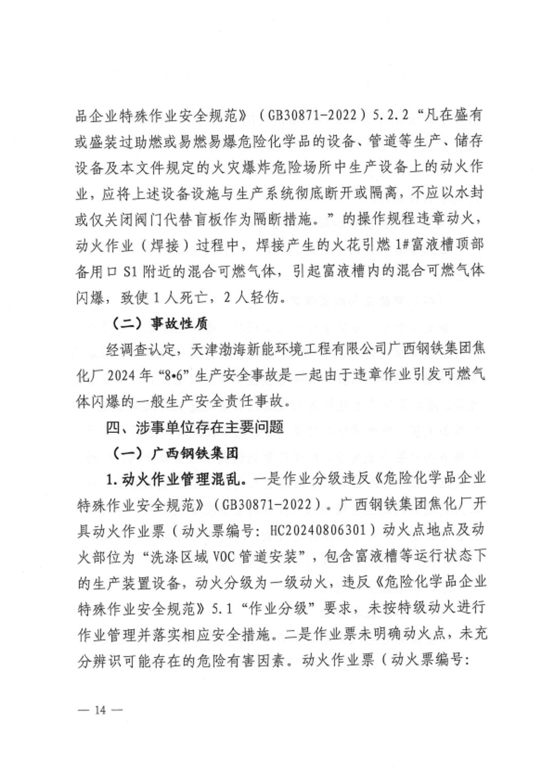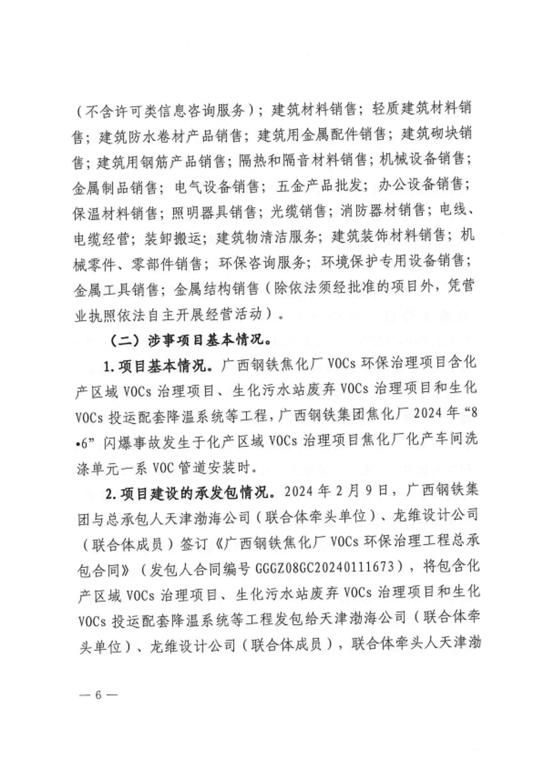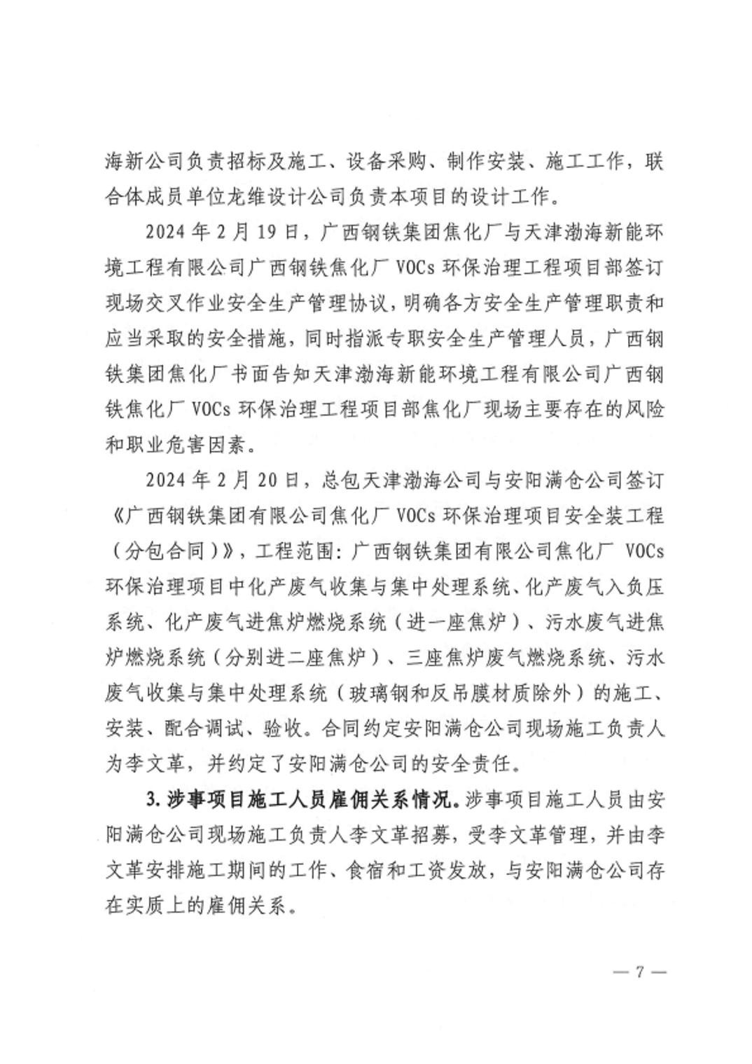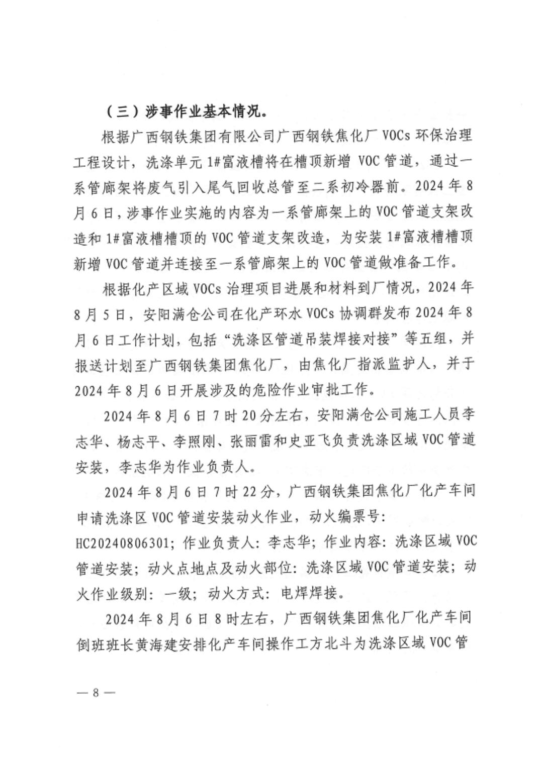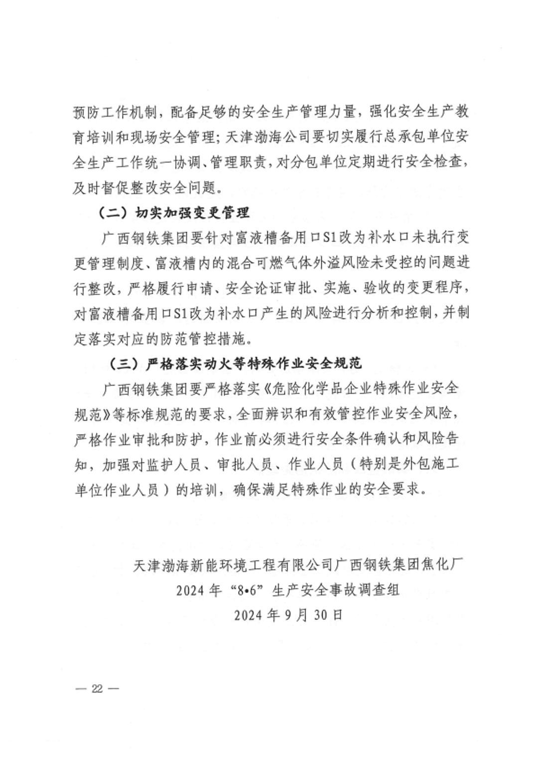 天津渤海新能環(huán)境工程有限公司廣西鋼鐵集團(tuán)焦化廠2024年“8?6”生產(chǎn)安全事故調(diào)查報告
