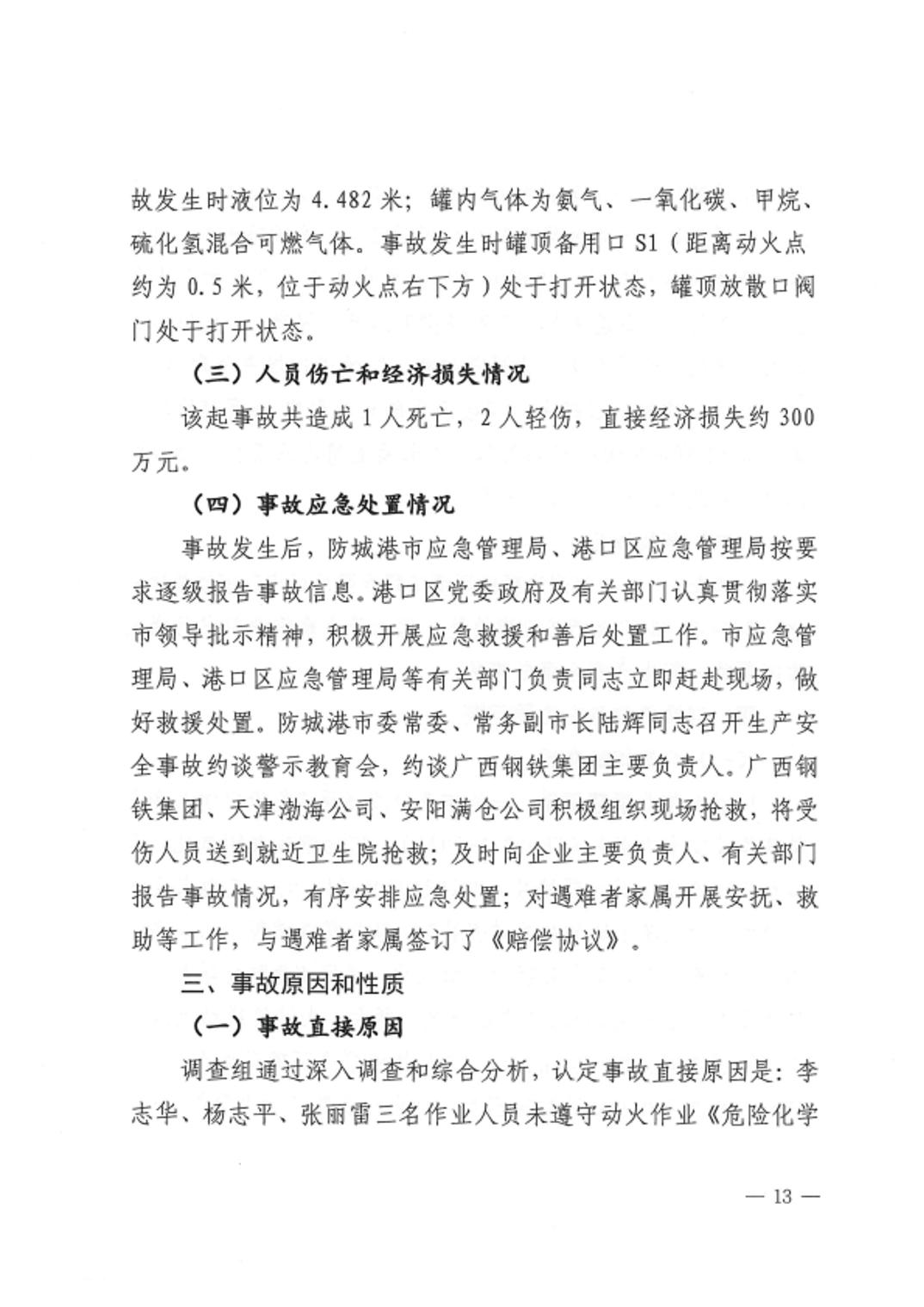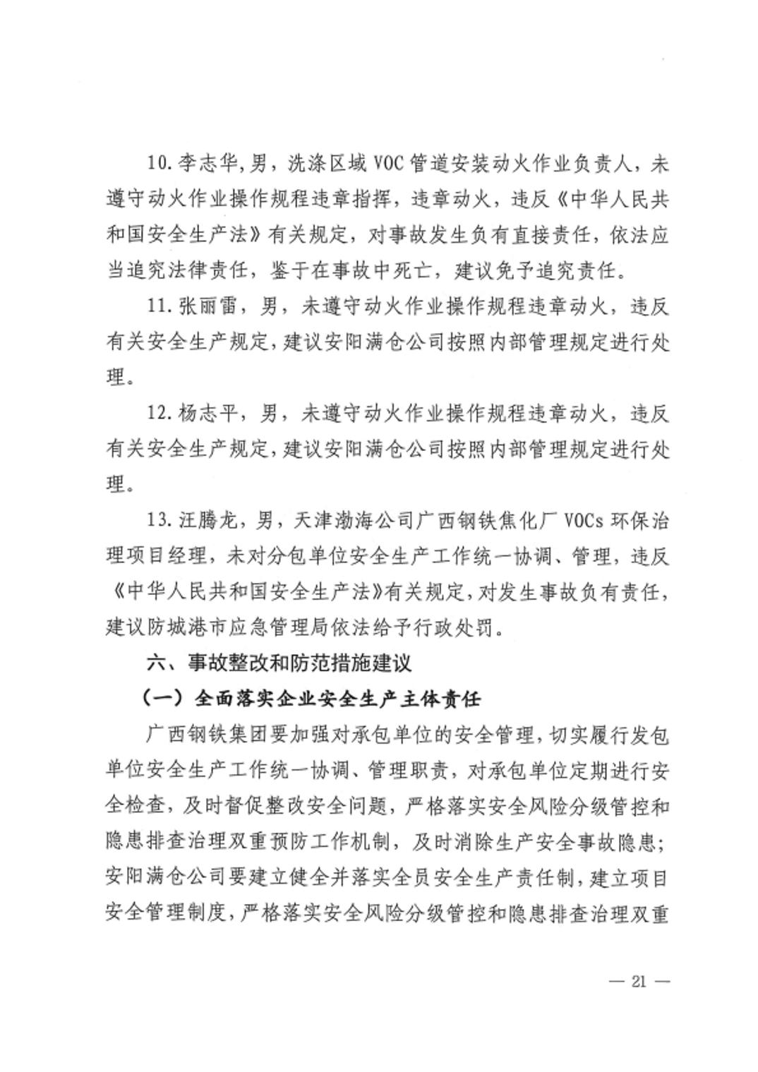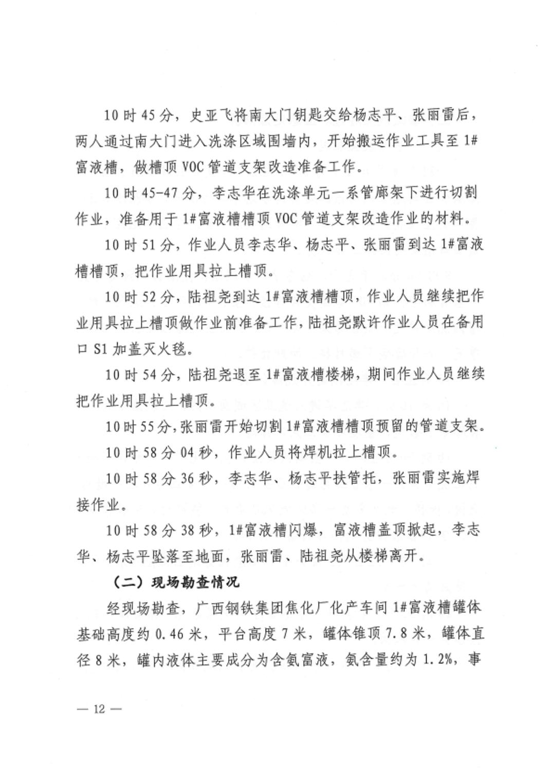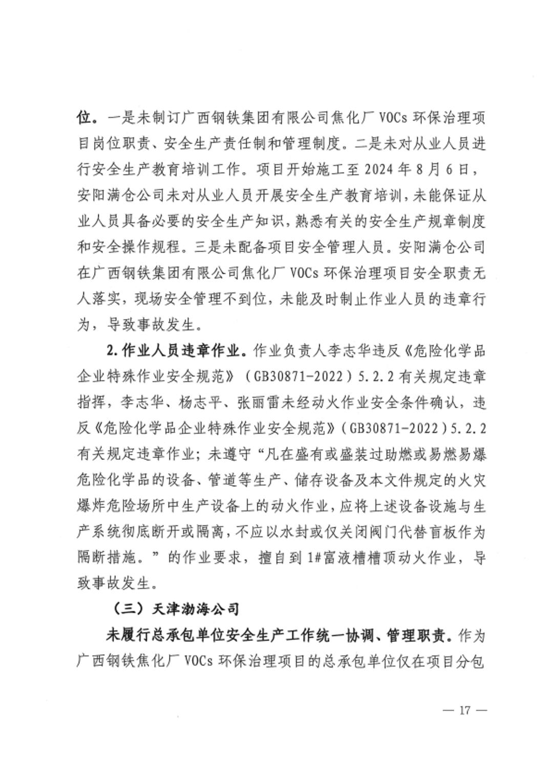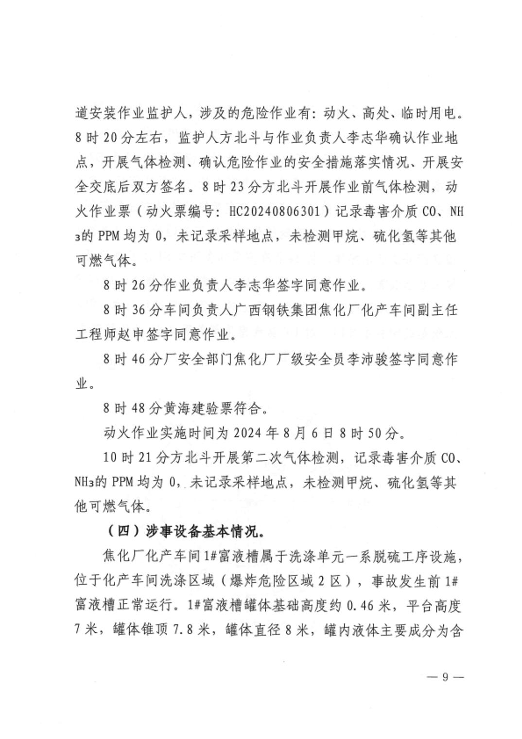 天津渤海新能環(huán)境工程有限公司廣西鋼鐵集團(tuán)焦化廠2024年“8?6”生產(chǎn)安全事故調(diào)查報告
