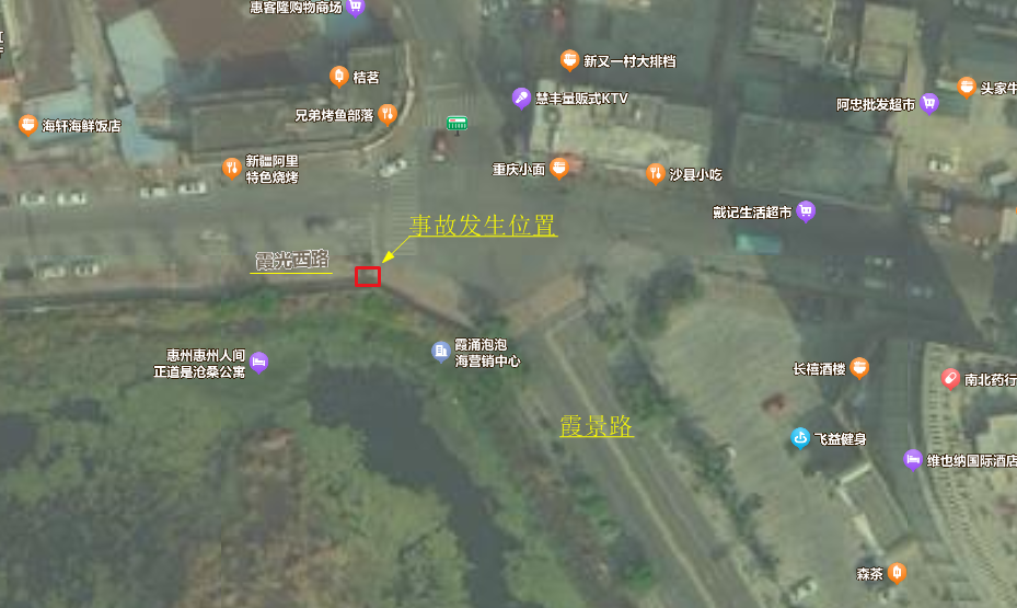 事故發(fā)生位置為大亞灣開發(fā)區(qū)霞涌街道霞光西路與霞景路交叉口南側(cè)空地圍墻邊。(見附圖2)。
