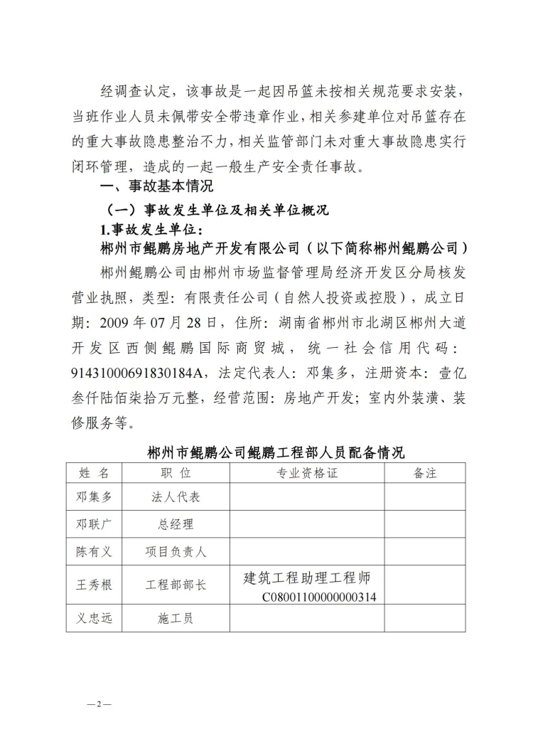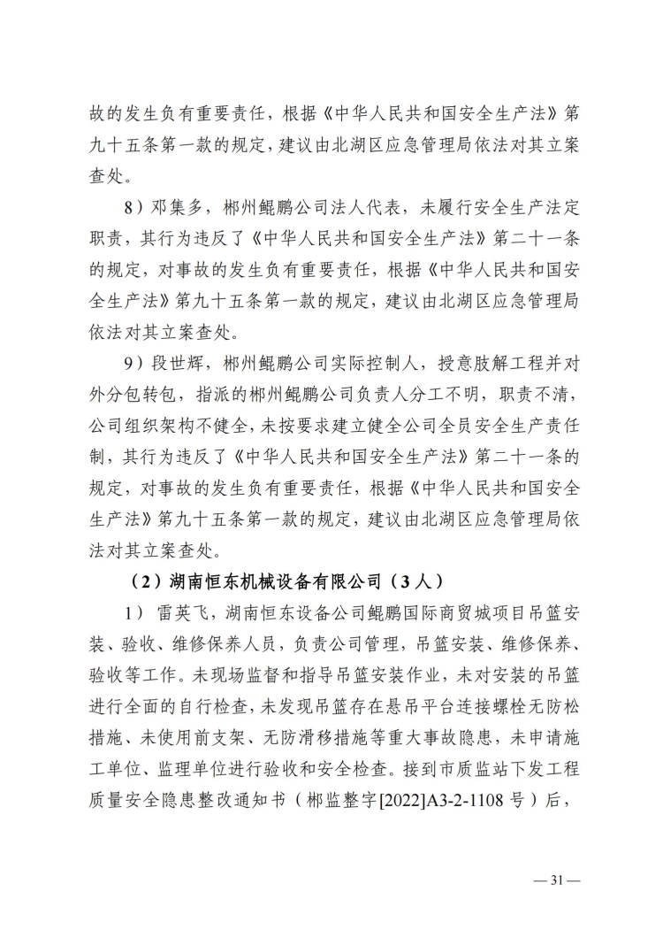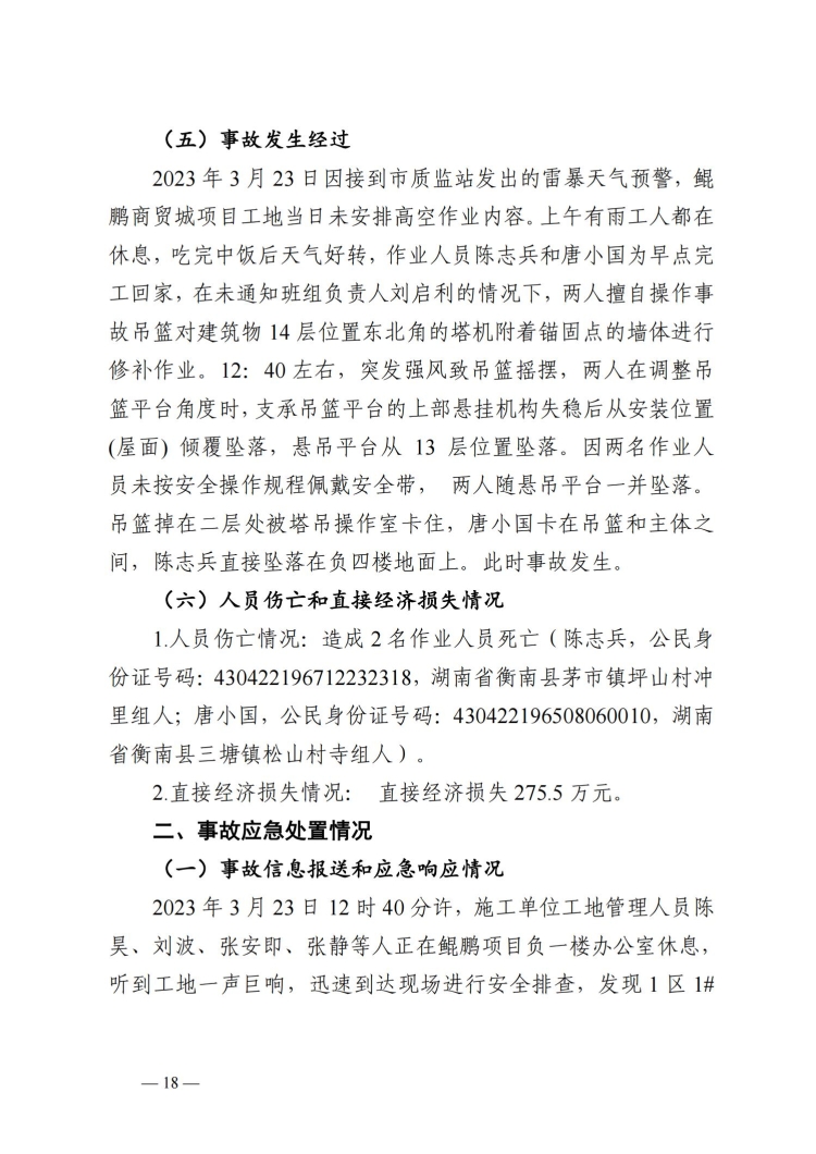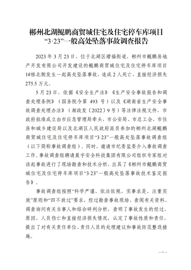 郴州北湖鯤鵬商貿(mào)城“3.23”事故調(diào)查報(bào)告