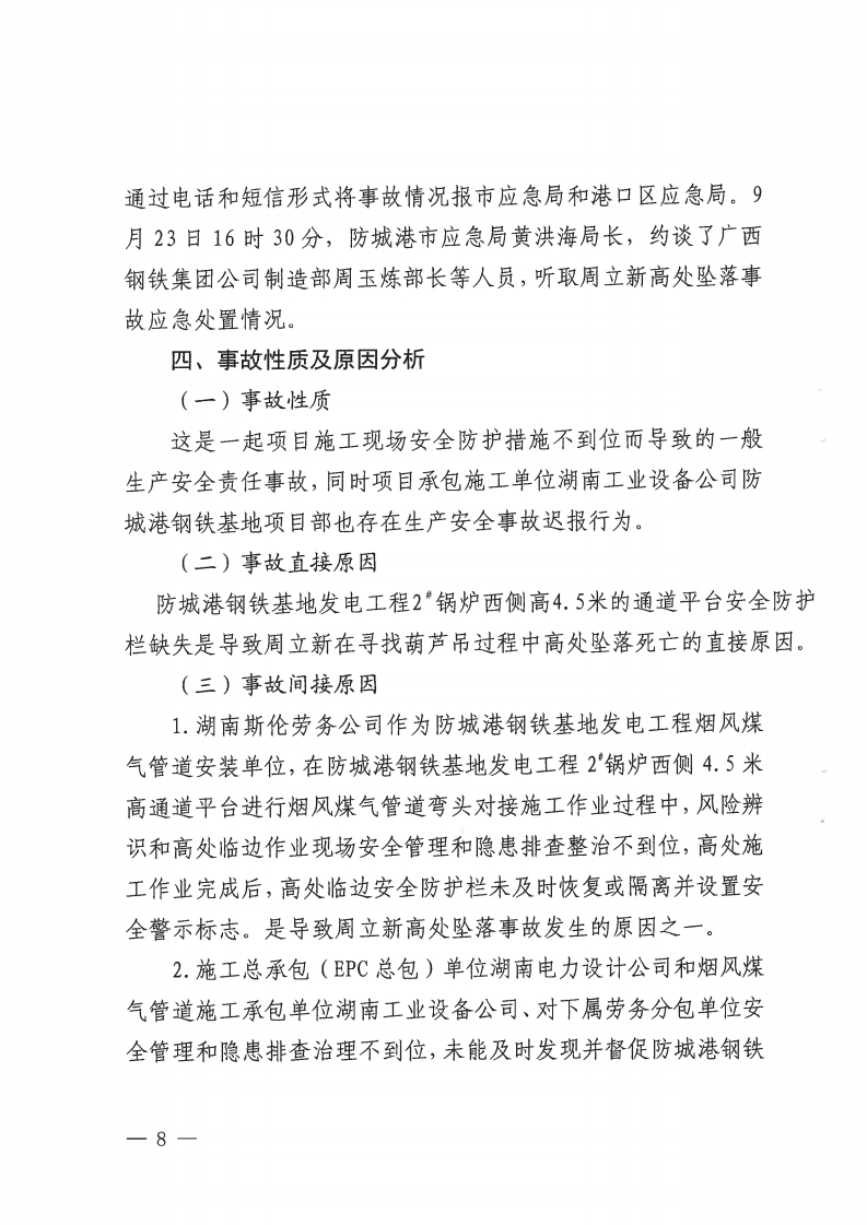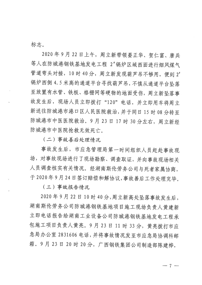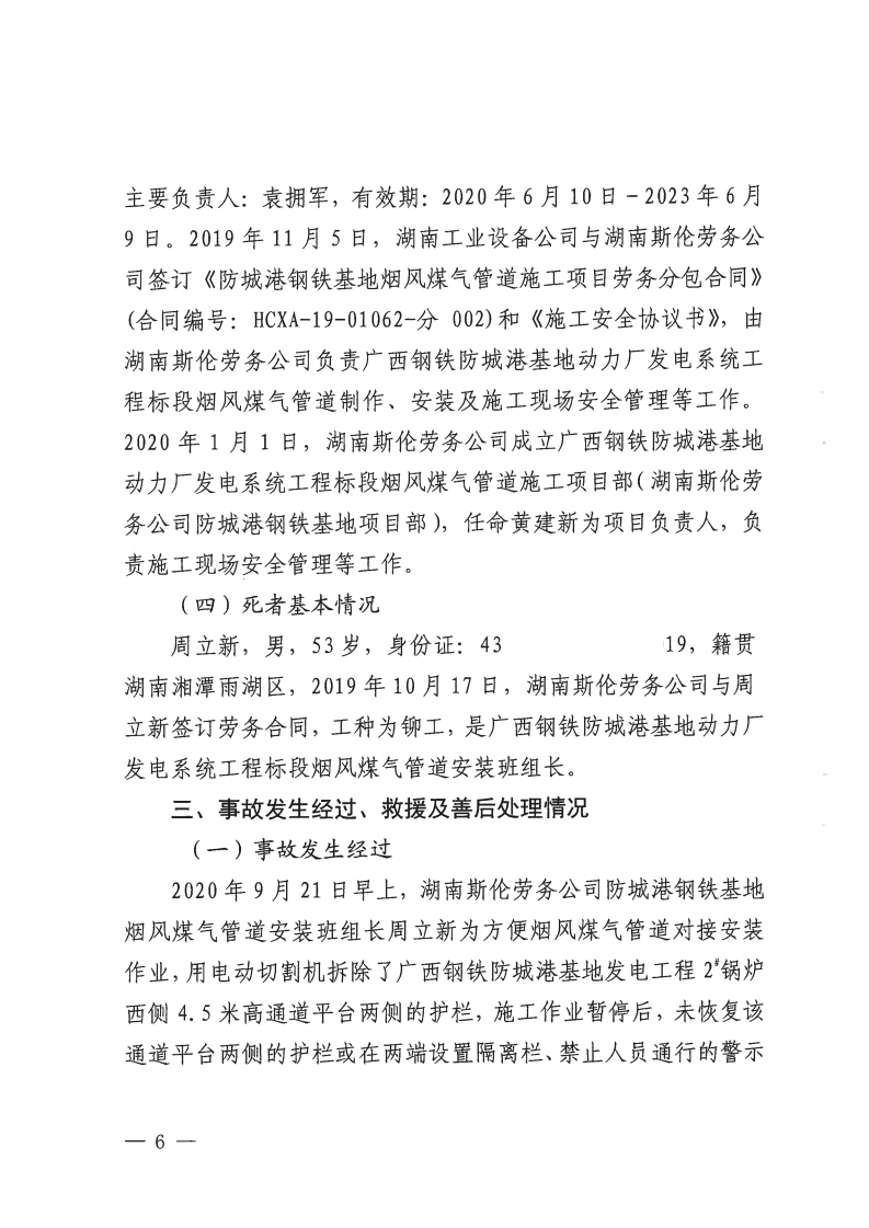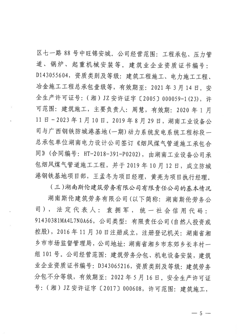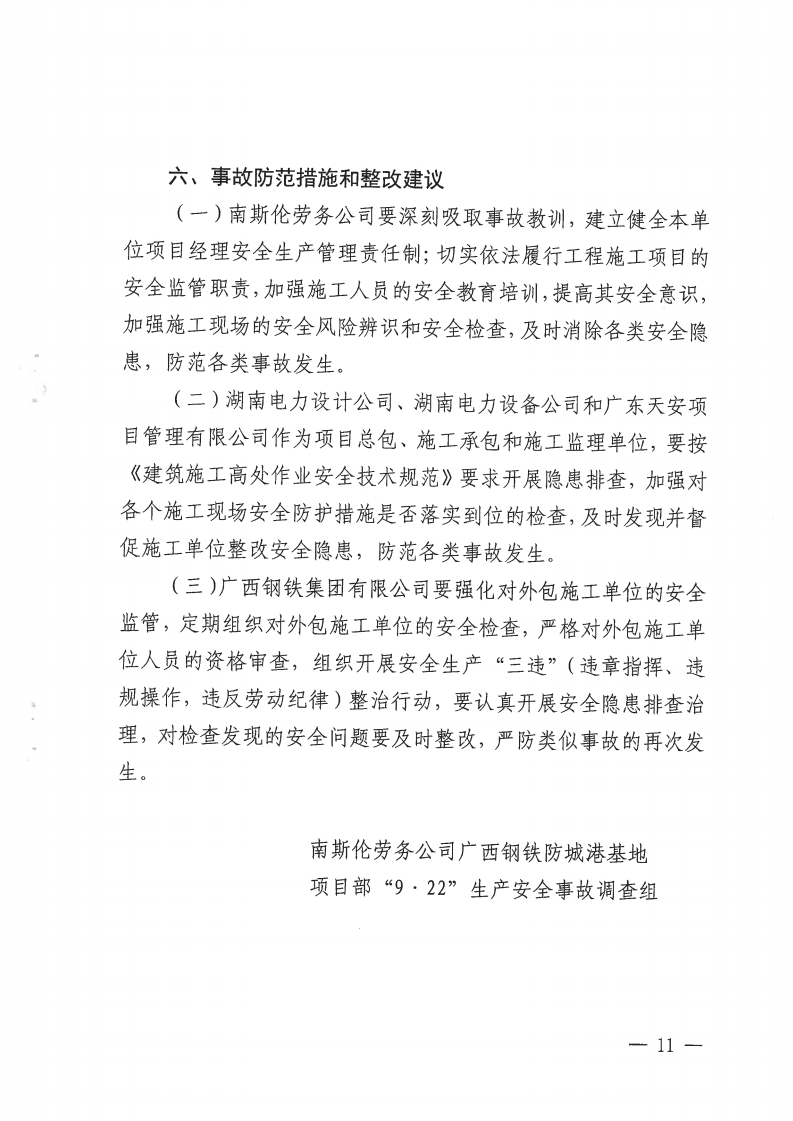 湖南斯倫建筑勞務(wù)有限公司廣西鋼鐵防城港基地項(xiàng)目部“9·22”生產(chǎn)安全事故調(diào)查報(bào)告