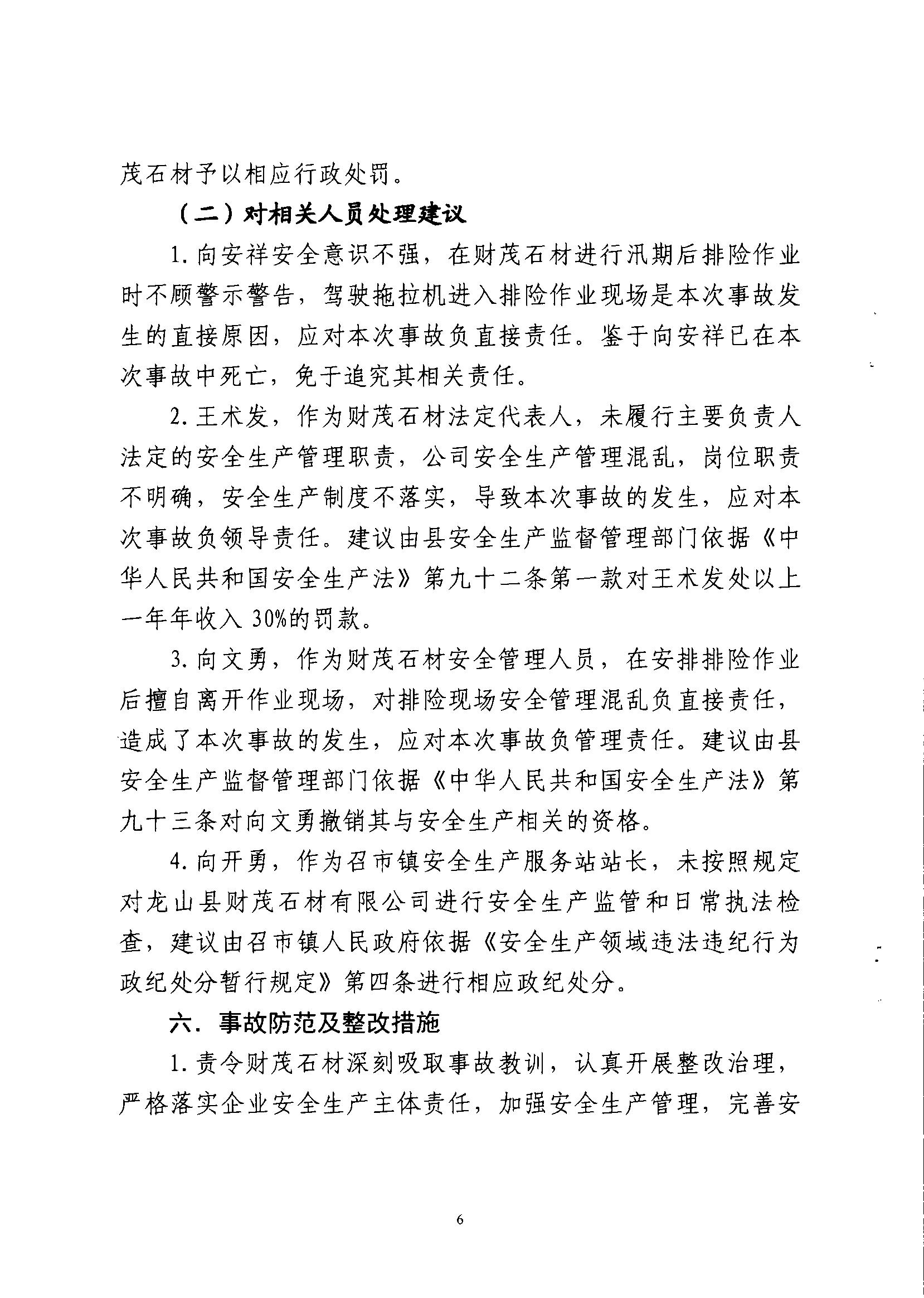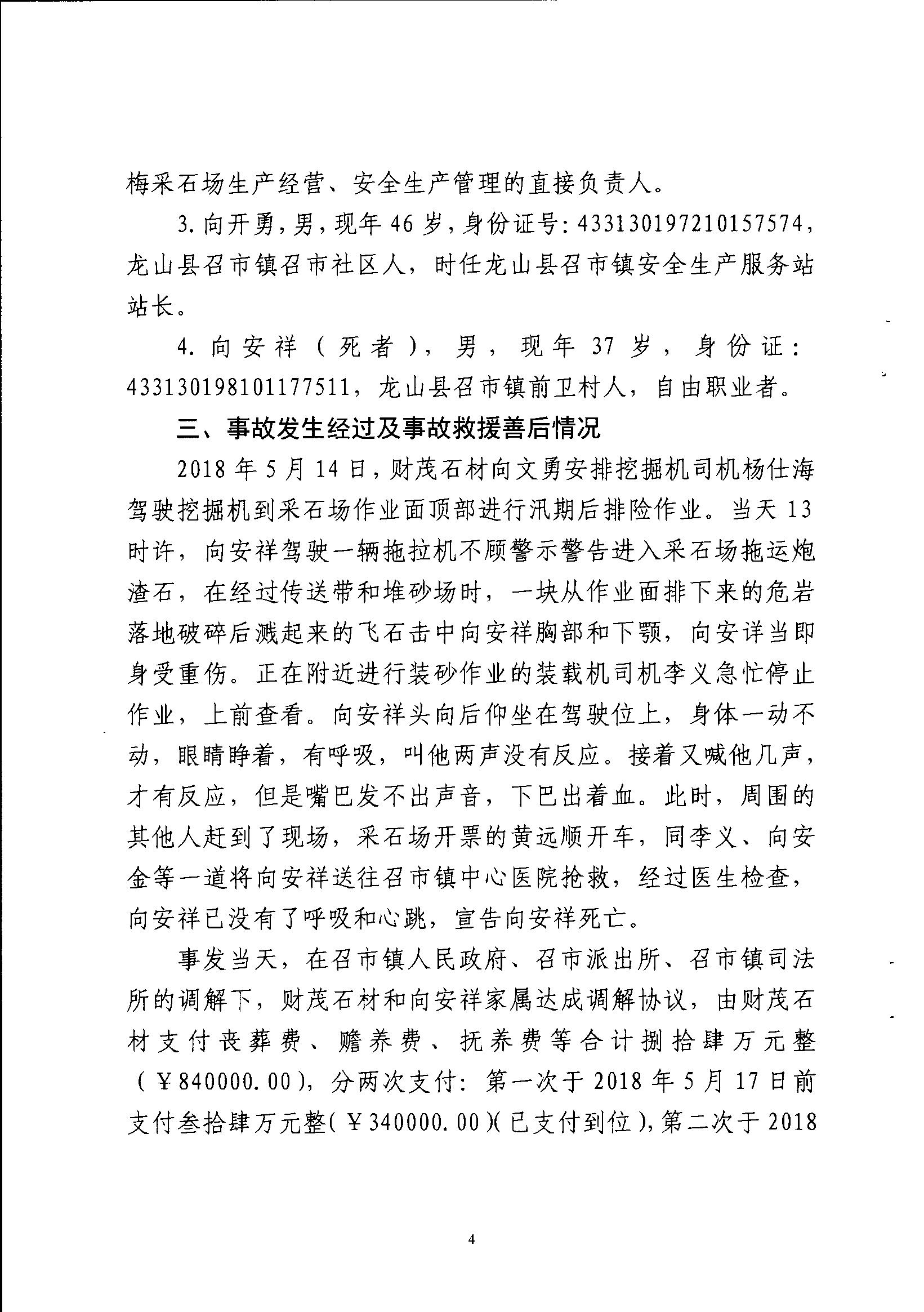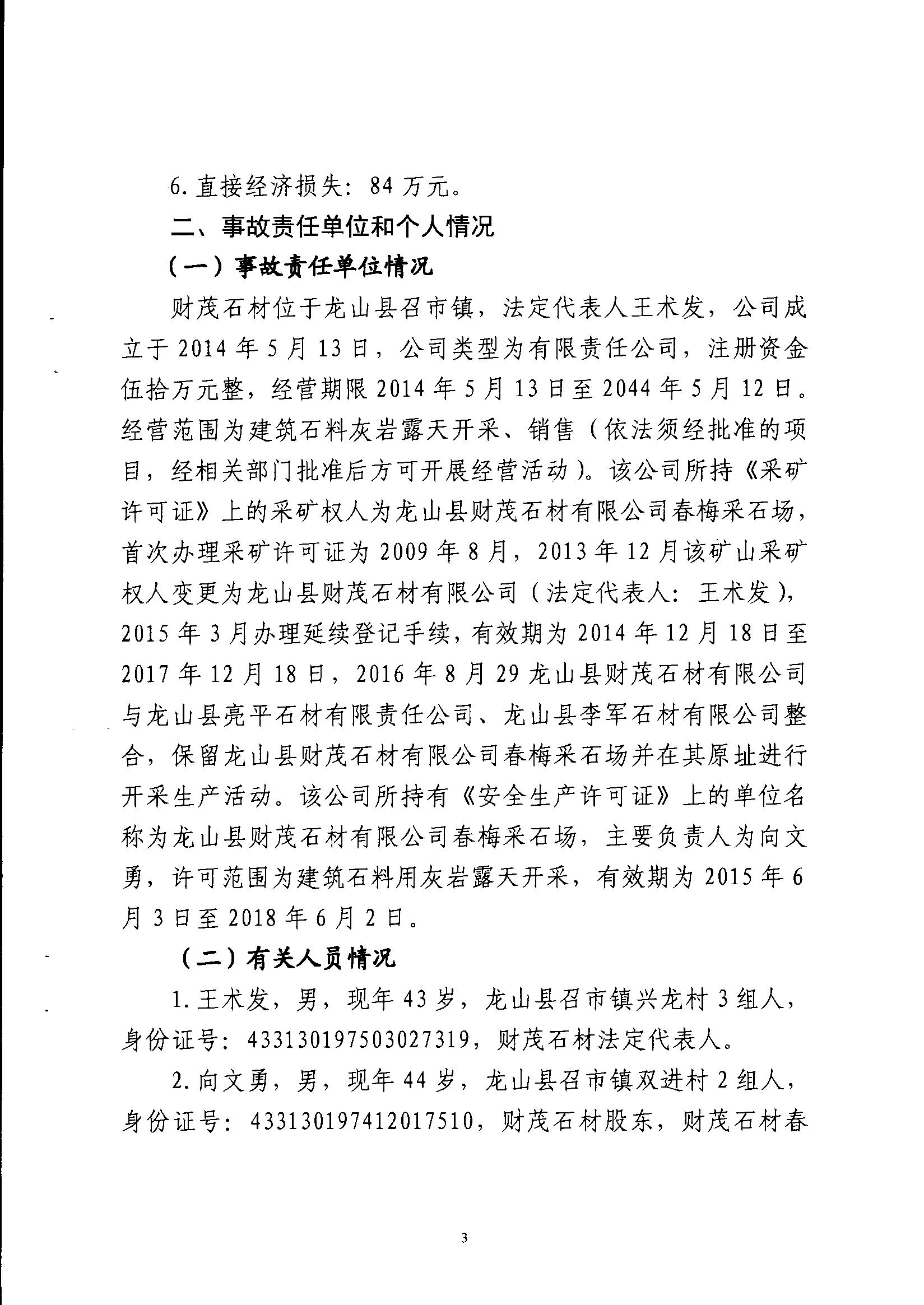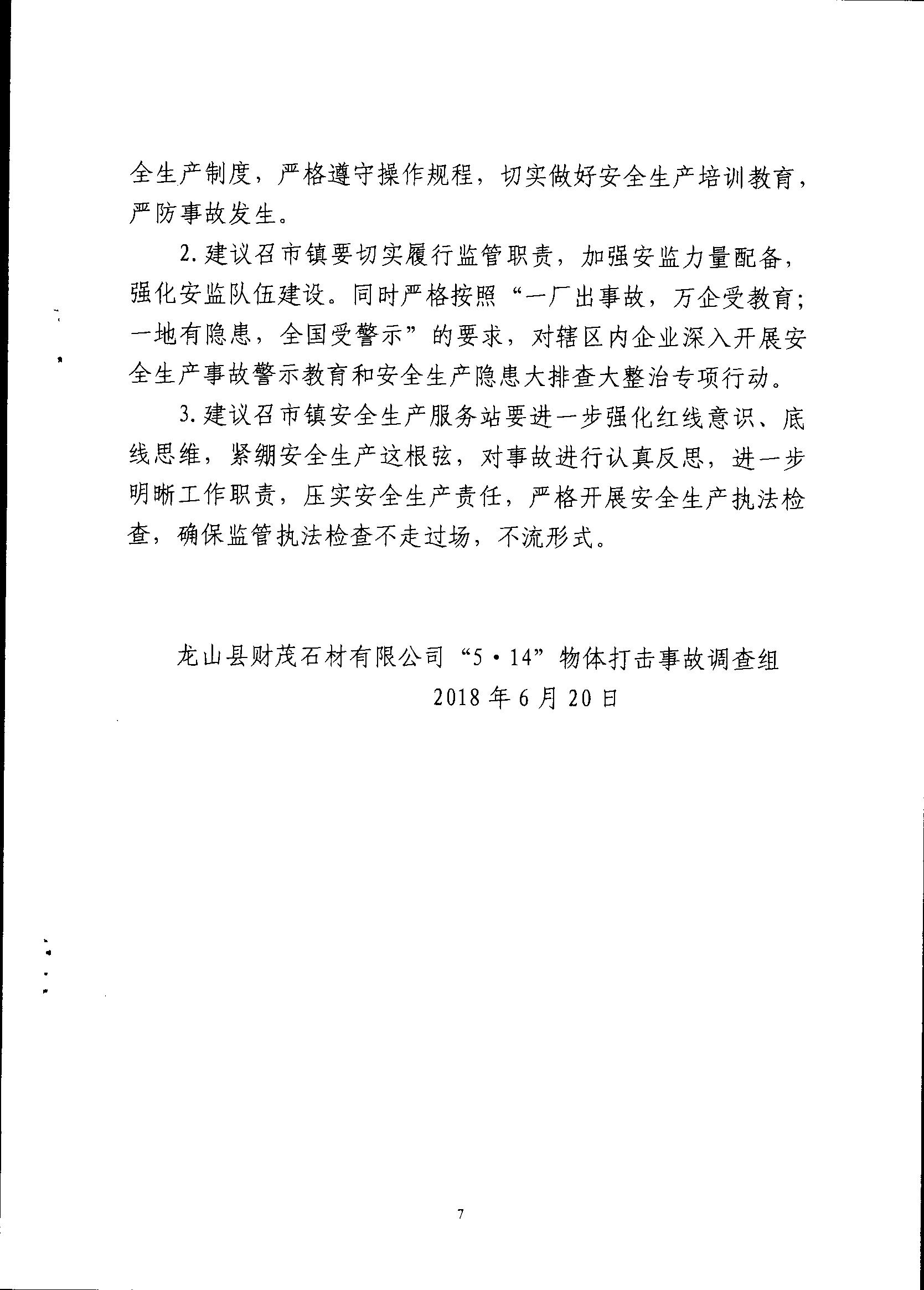 龍山縣財茂石材有限公司“5·14”物體打擊事故調查報告