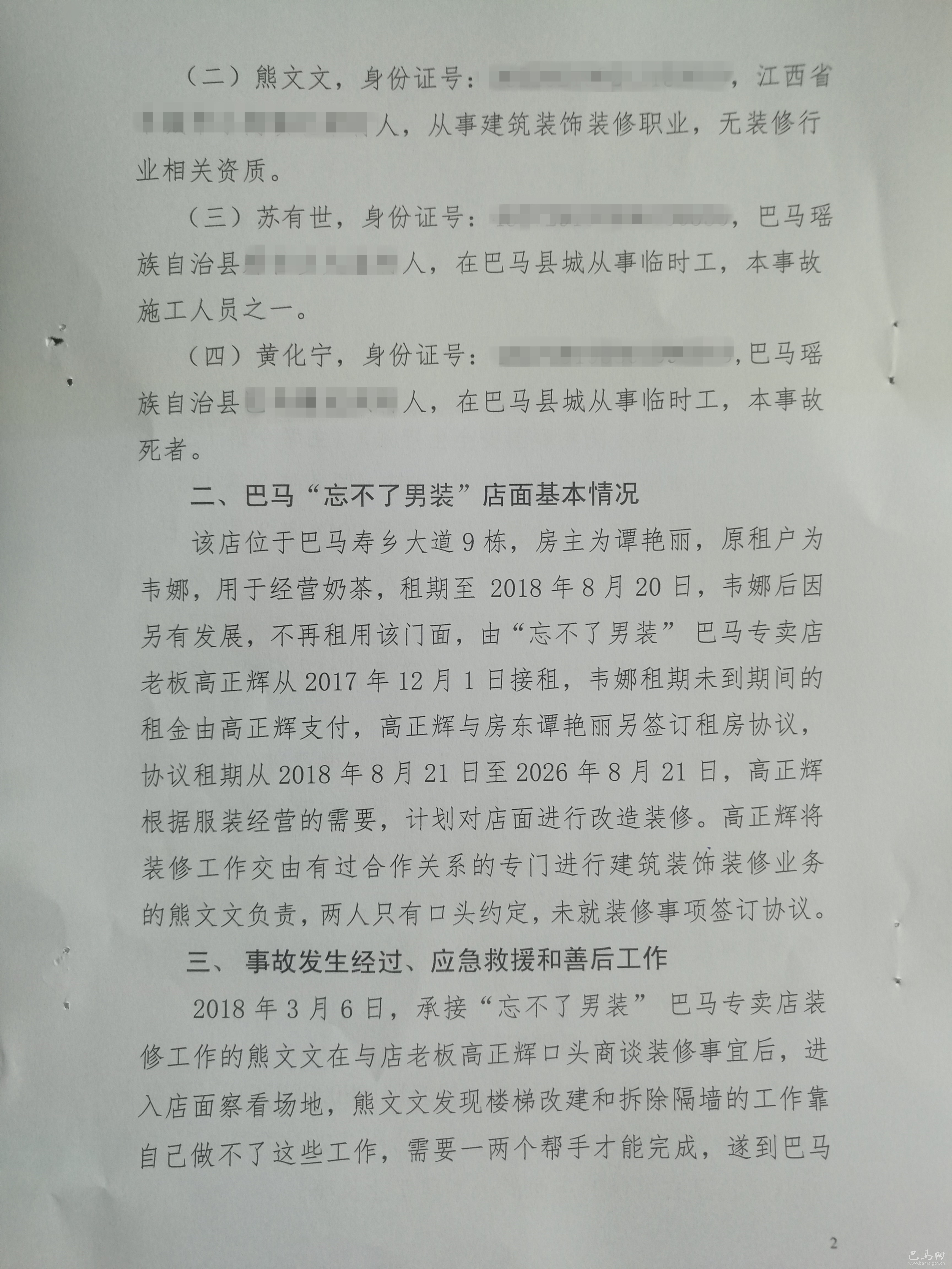 巴馬鎮(zhèn)壽鄉(xiāng)大道“忘不了男裝”專賣店拆墻“3.8”事故調(diào)查報告