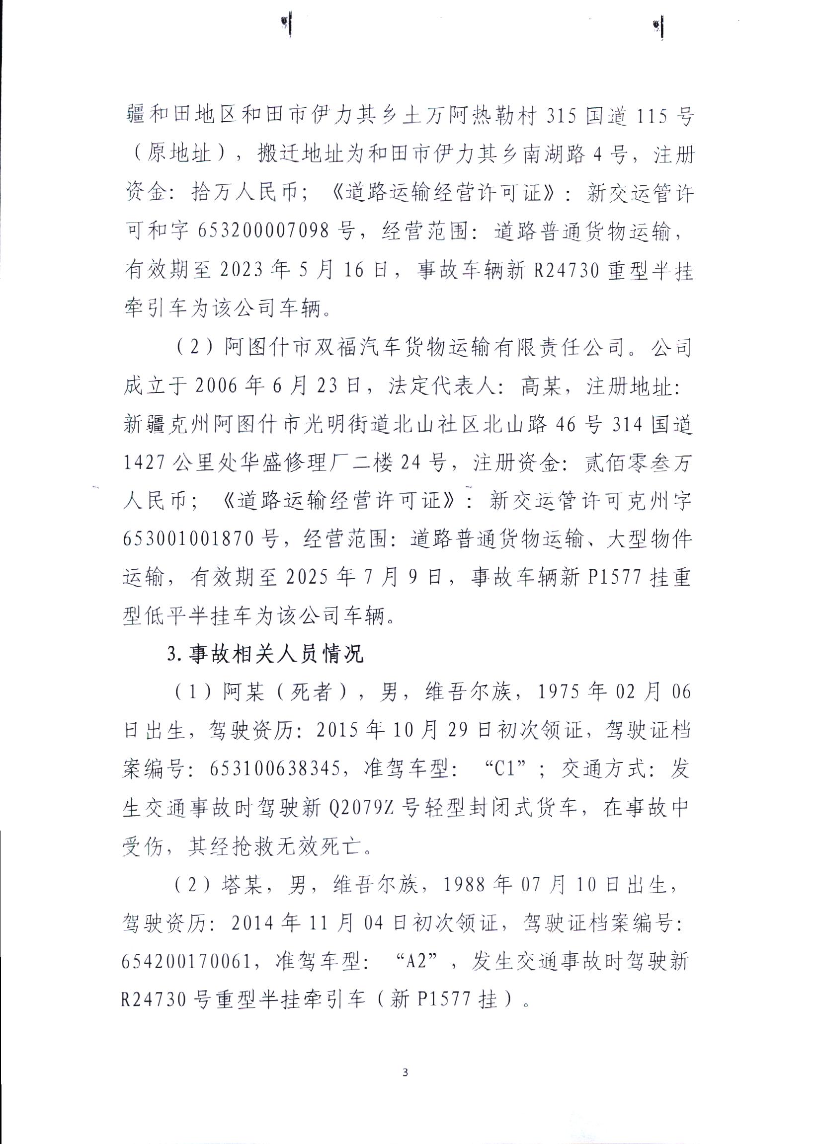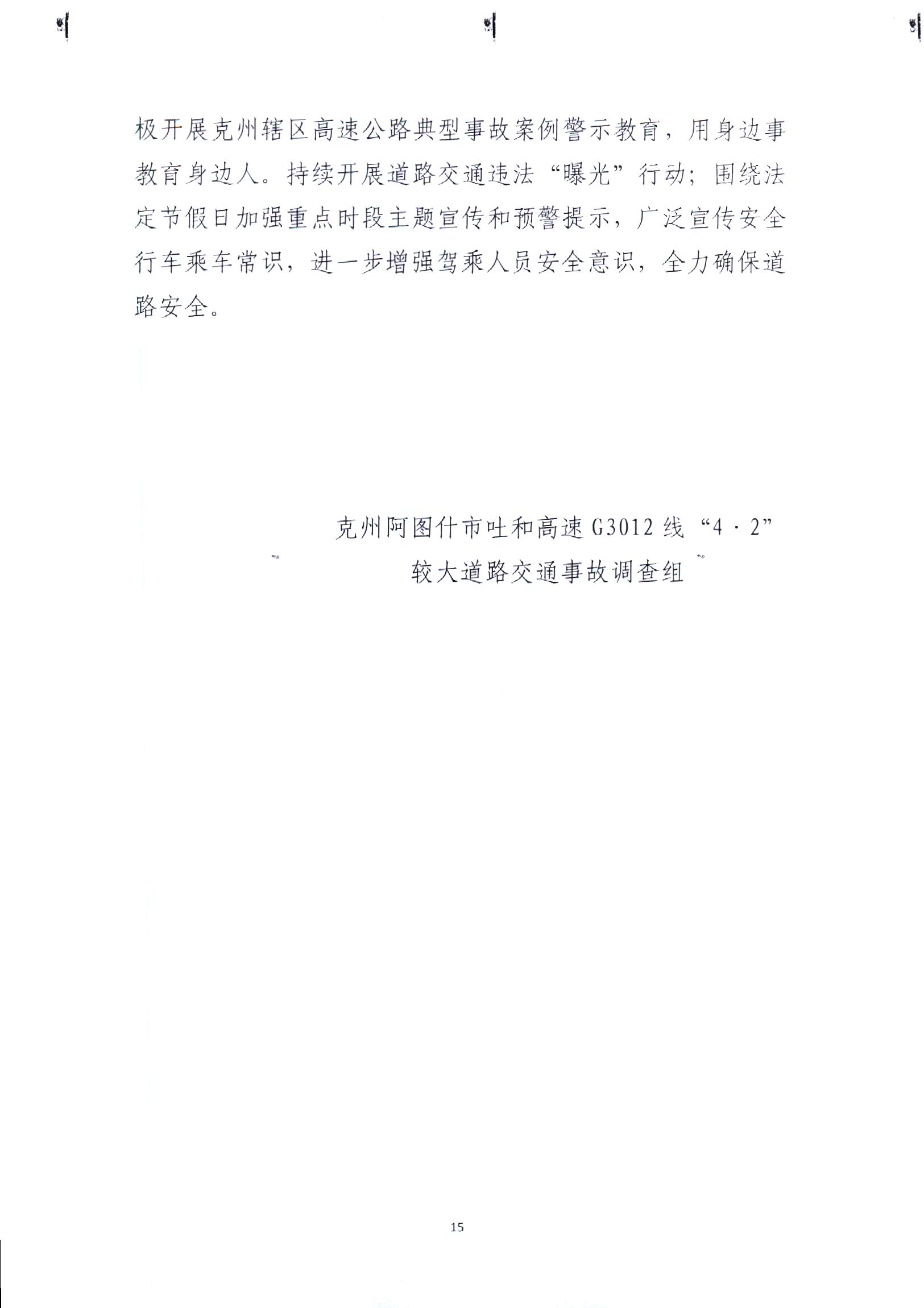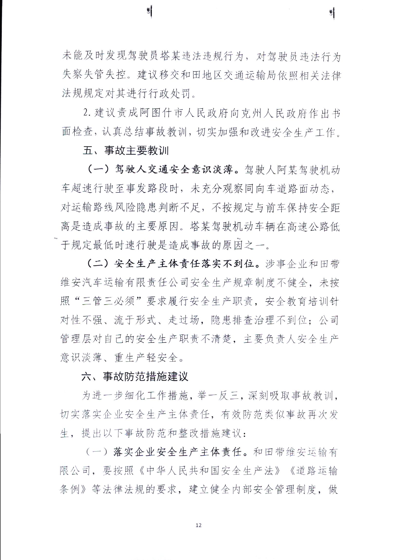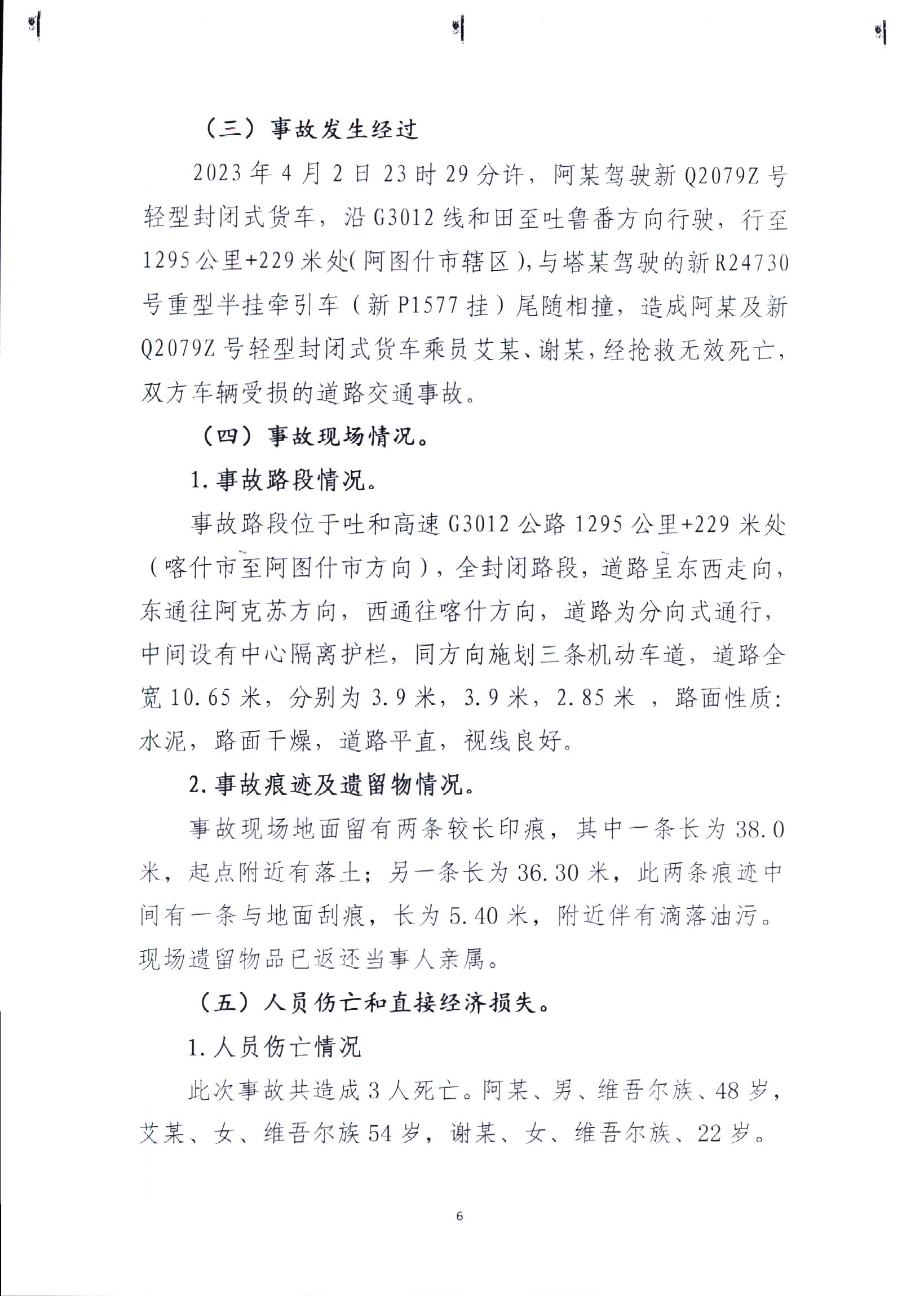 克州阿圖什市吐和高速G3012線“4.2”較大道路交通事故調(diào)查報告