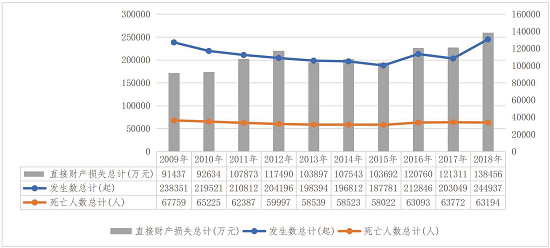 圖3 2009年-2018年全國(guó)交通事故發(fā)生情況匯總分析