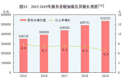 [21]戰(zhàn)略性新興服務(wù)業(yè)包括新一代信息技術(shù)產(chǎn)業(yè),高端裝備制造產(chǎn)業(yè),新材料產(chǎn)業(yè),生物產(chǎn)業(yè),新能源汽車產(chǎn)業(yè),新能源產(chǎn)業(yè),節(jié)能環(huán)保產(chǎn)業(yè)和數(shù)字創(chuàng)意產(chǎn)業(yè)等八大產(chǎn)業(yè)中的服務(wù)業(yè)相關(guān)行業(yè),以及新技術(shù)與創(chuàng)新創(chuàng)業(yè)等相關(guān)服務(wù)業(yè)。2019年戰(zhàn)略性新興服務(wù)業(yè)企業(yè)營業(yè)收入增速按可比口徑計算。
