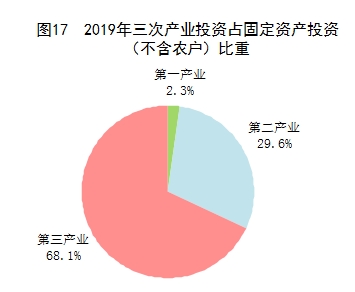 在固定資產(chǎn)投資(不含農(nóng)戶)中,第一產(chǎn)業(yè)投資12633億元,比上年增長0.6%;第二產(chǎn)業(yè)投資163070億元,增長3.2%;第三產(chǎn)業(yè)投資375775億元,增長6.5%。民間固定資產(chǎn)投資[47]311159億元,增長4.7%?;A(chǔ)設(shè)施投資[48]增長3.8%。六大高耗能行業(yè)投資增長4.7%。