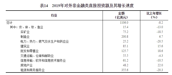 全年對外非金融類直接投資額7630億元,比上年下降4.3%,折1106億美元,下降8.2%。其中,對“一帶一路”沿線國家非金融類直接投資額150億美元,下降3.8%。