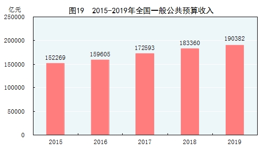 注:圖中2015年至2018年數(shù)據(jù)為全國一般公共預(yù)算收入決算數(shù),2019年為執(zhí)行數(shù)。
