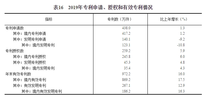 全年研究與試驗發(fā)展(R&D)經(jīng)費(fèi)支出21737億元,比上年增長10.5%,與國內(nèi)生產(chǎn)總值之比為2.19%,其中基礎(chǔ)研究經(jīng)費(fèi)1209億元。國家科技重大專項共安排234個課題,國家自然科學(xué)基金共資助45192個項目。截至年底,正在運(yùn)行的國家重點實驗室515個,累計建設(shè)國家工程研究中心133個,國家工程實驗室217個,國家企業(yè)技術(shù)中心1540家。國家科技成果轉(zhuǎn)化引導(dǎo)基金累計設(shè)立21支子基金,資金總規(guī)模313億元。國家級科技企業(yè)孵化器[66]1177家,國家備案眾創(chuàng)空間[67]1888家。全年境內(nèi)外專利申請438.0萬件,比上年增長1.3%;授予專利權(quán)259.2萬件,增長5.9%;PCT專利申請受理量[68]為6.1萬件。截至年底,有效專利972.2萬件,其中境內(nèi)有效發(fā)明專利186.2萬件,每萬人口發(fā)明專利擁有量13.3件。全年商標(biāo)申請783.7萬件,比上年增長6.3%;商標(biāo)注冊640.6萬件,增長27.9%。全年共簽訂技術(shù)合同48.4萬項,技術(shù)合同成交金額22398億元,比上年增長26.6%。