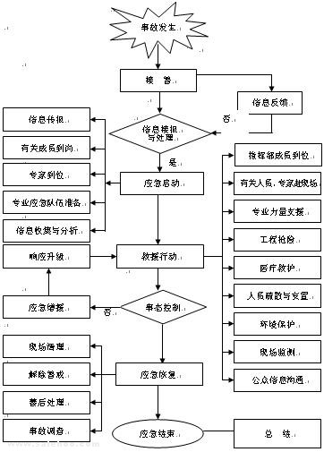 一、總則 1.1編制目的 為規(guī)范福州市安全生產(chǎn)事故災(zāi)難的應(yīng)急管理、應(yīng)急響應(yīng)和應(yīng)急處置工作,及時有效地實(shí)施應(yīng)急救援,最大限度地減少人員傷亡和財(cái)產(chǎn)損失,維護(hù)人民群眾的生命財(cái)產(chǎn)安全和社會穩(wěn)定。 1.2編制依據(jù) 依據(jù)《中華人民共和國安全生產(chǎn)法》、《國務(wù)院關(guān)于進(jìn)一步加強(qiáng)安全生產(chǎn)工作的決定》、《國家安全生產(chǎn)事故災(zāi)難應(yīng)急預(yù)案》、《福建省人民政府突發(fā)公共事件總體應(yīng)急預(yù)案》等法律法規(guī)及有關(guān)規(guī)定,制定本預(yù)案。 1.3適用范圍 本預(yù)案適用于下列安全生產(chǎn)事故災(zāi)難的應(yīng)急處置工作: 1.3.1有可能造成一次性死亡3人以上(含失蹤),或者危及3人以上生命安全,或者50人以上急性中毒(重傷),或者直接經(jīng)濟(jì)損失在500萬元以上的安全生產(chǎn)事故災(zāi)難。 1.3.2 超出縣(市)區(qū)人民政府應(yīng)急處置能力的安全生產(chǎn)事故災(zāi)難;跨縣(市)區(qū)行政區(qū)域和跨部門的安全生產(chǎn)事故災(zāi)難。 1.3.3 市政府領(lǐng)導(dǎo)認(rèn)為需要市政府處置的安全生產(chǎn)事故災(zāi)難。 1.4工作原則 1.4.1以人為本,安全第一。把保障人民群眾的生命安全和身體健康、最大程度地預(yù)防和減少安全生產(chǎn)事故災(zāi)難造成的人員傷亡作為首要任務(wù)。不斷改進(jìn)和完善應(yīng)急救援的裝備、設(shè)施和手段,切實(shí)加強(qiáng)應(yīng)急救援人員的安全防護(hù)。充分發(fā)揮人的主觀能動性和專業(yè)救援力量的骨干作用。 1.4.2統(tǒng)一領(lǐng)導(dǎo),各負(fù)其責(zé)。在市委、市人民政府統(tǒng)一領(lǐng)導(dǎo)和市安全生產(chǎn)事故應(yīng)急領(lǐng)導(dǎo)小組組織協(xié)調(diào)下,各有關(guān)部門按照各自職責(zé)和權(quán)限,負(fù)責(zé)有關(guān)安全生產(chǎn)事故災(zāi)難的應(yīng)急管理和應(yīng)急處置工作。企業(yè)要建立安全生產(chǎn)應(yīng)急救援預(yù)案和應(yīng)急機(jī)制。 1.4.3 條塊結(jié)合,以塊為主。按照屬地管理和“就地、就近、快速、有效”的原則,安全生產(chǎn)事故災(zāi)難應(yīng)急工作實(shí)行縣(市)區(qū)政府行政領(lǐng)導(dǎo)負(fù)責(zé)制,部、省屬駐榕和市屬企業(yè)單位發(fā)生事故災(zāi)難后,應(yīng)及時報(bào)告市安全生產(chǎn)事故應(yīng)急領(lǐng)導(dǎo)小組和本企業(yè)單位的上一級主管部門,并服從市應(yīng)急指揮部的統(tǒng)一指揮。事故災(zāi)難處置以縣(市)區(qū)政府安全生產(chǎn)事故應(yīng)急領(lǐng)導(dǎo)小組為主,同時充分發(fā)揮企業(yè)的自救作用。 1.4.4 依靠科學(xué),依法規(guī)范。采用先進(jìn)技術(shù),充分發(fā)揮專家作用,實(shí)行科學(xué)民主決策。采用先進(jìn)的救援裝備和技術(shù),增強(qiáng)應(yīng)急救援能力。 1.4.5 整合資源,發(fā)揮優(yōu)勢。充分利用現(xiàn)有資源,避免重復(fù)建設(shè)。明確不同類型安全生產(chǎn)事故災(zāi)難應(yīng)急處置的牽頭部門及其職責(zé)、權(quán)限,其他相關(guān)部門、單位密切配合。建立統(tǒng)一的突發(fā)安全生產(chǎn)事故災(zāi)難信息平臺,確保突發(fā)事故災(zāi)難信息及時準(zhǔn)確傳遞,實(shí)現(xiàn)信息的互通和共享。 1.4.6 預(yù)防為主,平戰(zhàn)結(jié)合。貫徹落實(shí)“安全第一,預(yù)防為主”的方針,堅(jiān)持事故災(zāi)難應(yīng)急與預(yù)防工作相結(jié)合,做好預(yù)防、預(yù)測、預(yù)警和預(yù)報(bào)工作,做好常態(tài)下的風(fēng)險(xiǎn)評估、物資儲備、隊(duì)伍建設(shè)、完善裝備、預(yù)案演練等工作。 二、組織體系及相關(guān)機(jī)構(gòu)職責(zé) 2.1 組織體系 全市安全生產(chǎn)事故災(zāi)難應(yīng)急救援組織體系由市政府、市直有關(guān)部門、縣(市)區(qū)人民政府安全生產(chǎn)事故應(yīng)急領(lǐng)導(dǎo)機(jī)構(gòu)、綜合協(xié)調(diào)指揮機(jī)構(gòu)、專業(yè)協(xié)調(diào)指揮機(jī)構(gòu)、應(yīng)急支持保障部門、應(yīng)急救援隊(duì)伍和生產(chǎn)經(jīng)營單位組成。 市政府成立福州市安全生產(chǎn)事故災(zāi)難應(yīng)急領(lǐng)導(dǎo)小組,組長由市政府分管領(lǐng)導(dǎo)擔(dān)任。領(lǐng)導(dǎo)小組下設(shè)辦公室,辦公室主任由市政府辦公廳領(lǐng)導(dǎo)或市直有關(guān)部門領(lǐng)導(dǎo)擔(dān)任。 各縣(市)區(qū)政府的安全生產(chǎn)事故災(zāi)難應(yīng)急機(jī)構(gòu)由各縣(市)區(qū)政府確定。 應(yīng)急救援隊(duì)伍主要包括消防部隊(duì)、專業(yè)應(yīng)急救援隊(duì)伍、生產(chǎn)經(jīng)營單位的應(yīng)急救援隊(duì)伍、社會力量和志愿者隊(duì)伍。 2.2市政府安全生產(chǎn)事故災(zāi)難應(yīng)急領(lǐng)導(dǎo)小組職責(zé) 市政府安全生產(chǎn)事故災(zāi)難應(yīng)急領(lǐng)導(dǎo)小組在應(yīng)急救援管理方面的主要職責(zé):領(lǐng)導(dǎo)、組織、協(xié)調(diào)全市安全生產(chǎn)應(yīng)急管理和事故災(zāi)難應(yīng)急救援工作;負(fù)責(zé)應(yīng)急救援重大事項(xiàng)的決策;必要時協(xié)調(diào)駐軍和武警部隊(duì)參加應(yīng)急救援工作。 2.3市政府安全生產(chǎn)事故災(zāi)難應(yīng)急領(lǐng