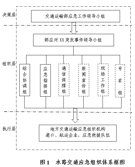 ?、窦?jí)應(yīng)急響應(yīng)時(shí)水路交通應(yīng)急組織體系框架見圖1。