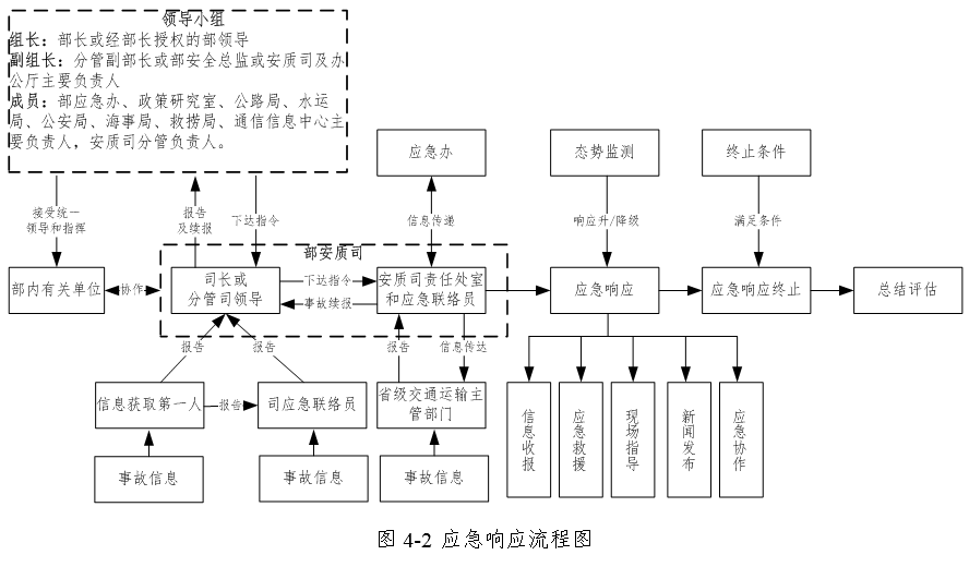 (3)部安質司負責將應急響應信息通知部內相關司局和事發(fā)地省級交通運輸主管部門,各級公路水運工程生產(chǎn)安全事故應急響應同步啟動。