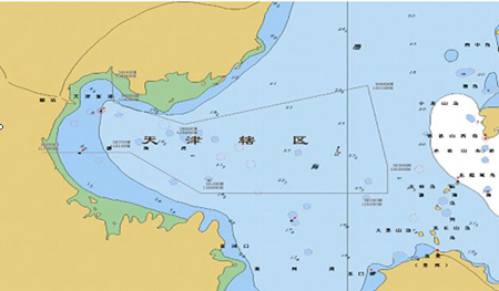 38°30′N/120°20′E、39°08′N/120°10′E、38°50′N/118°40′E、39°00′N/118°05′E、39°14′N/118°04′E九點連線所圍成的海域,(見圖)