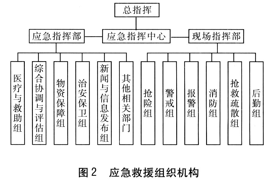 應(yīng)急救援的組織機(jī)構(gòu)見(jiàn)圖2。