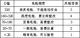 針對(duì)被評(píng)價(jià)的具體作業(yè)條件,由有關(guān)人員(如車間主任、安全人員、技術(shù)人員、工人代表)組成小組,依據(jù)過去的經(jīng)歷和有關(guān)的知識(shí)進(jìn)行充分討論,估定L、E、C的分?jǐn)?shù)值,計(jì)算三個(gè)指標(biāo)的乘積得出危險(xiǎn)性分值,然后依據(jù)表4來定義風(fēng)險(xiǎn)等級(jí)。