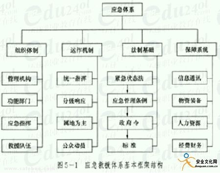 一個完整的應(yīng)急體系應(yīng)由組織體制、運作機制、法制基礎(chǔ)和應(yīng)急保障系統(tǒng)4部分構(gòu)成,如圖5—1所示。