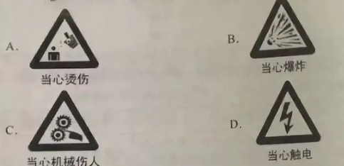 4.某食品工廠前處理車間的純蒸汽制備裝置有蒸汽包、蒸汽管道、純水泵、配電柜等組成,在安全生產(chǎn)標(biāo)準(zhǔn)化評審時,配送員現(xiàn)場審查發(fā)現(xiàn),純蒸汽制備裝置現(xiàn)場設(shè)置了下列警示標(biāo)志。根據(jù)該場所的風(fēng)險評估結(jié)果,這些警示標(biāo)志中,設(shè)置錯誤的是( )。