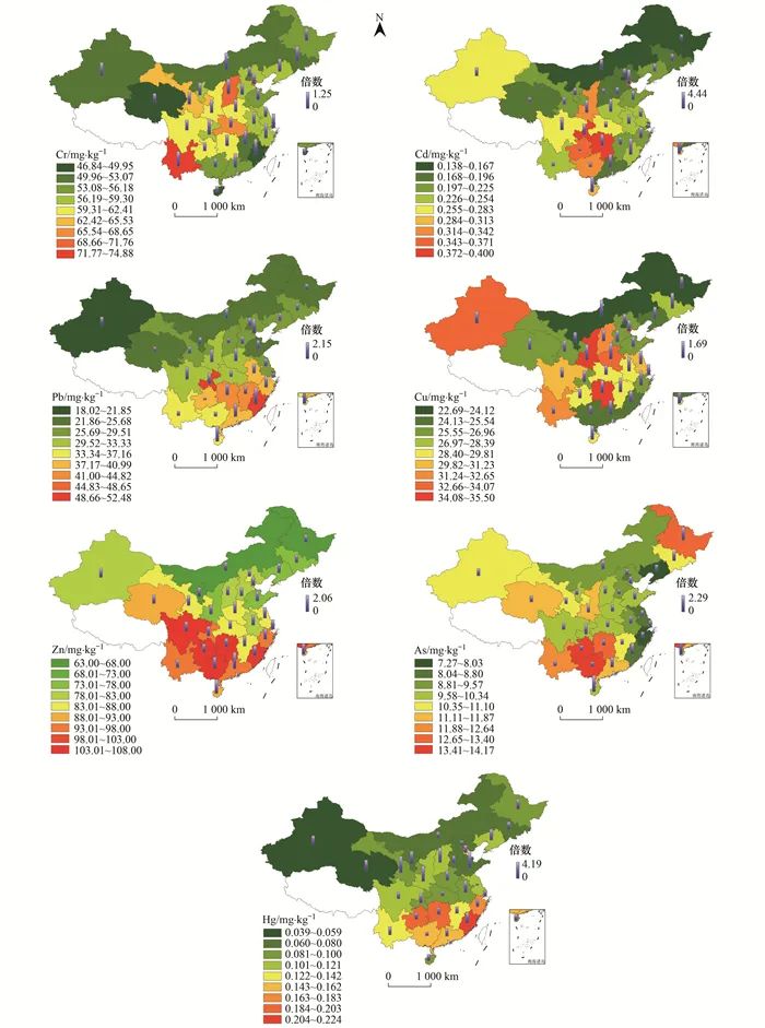 2.3 中國農(nóng)田土壤重金屬空間分布特征