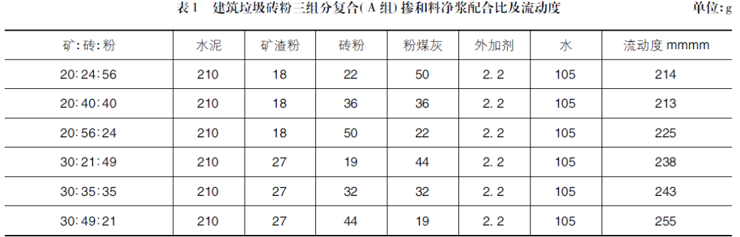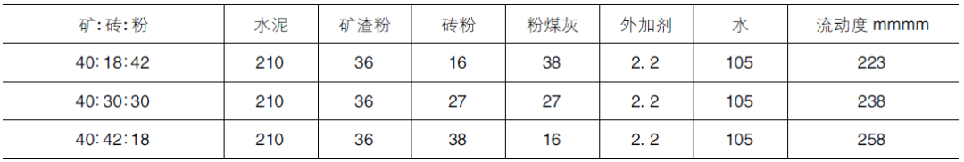 3.1 建筑垃圾磚粉三組分復(fù)合摻和料混凝土配合比