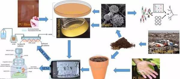 中科院昆明植物研究所許建初研究團隊從垃圾堆中發(fā)現吃塑料的真菌——一種了不起眼的土壤小型真菌。該真菌首先是來自巴基斯坦的Sehroon ?Khan博士從伊斯蘭堡一處垃圾處理場土壤中分離出來的。研究團隊在實驗室發(fā)現它可以在塑料表面生長,并通過生長過程中產生的酶和塑料發(fā)生生物反應,破壞塑料分子間或聚合物間的化學鍵。研究團隊中來自斯里蘭卡的Samantha ?Karunarathna博士把該真菌鑒定命名為塔賓曲霉菌(Aspergillus tubingensis)。