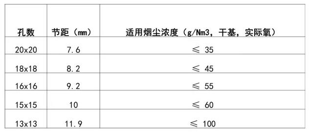 ⑤從催化劑的角度,要綜合考慮實(shí)際的工況與灰量,根據(jù)濃度與速度場分布情況,催化劑錯列布置,灰濃度大且流速低的爐前側(cè)宜布置大孔距催化劑,爐后灰濃度小且流速大的爐后位置宜布置小孔距催化劑,將飛灰沉積的問題最小化。推薦如下: