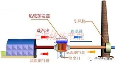 企業(yè)生產(chǎn)工藝中的烘干、采暖和洗浴常年需要熱源。在發(fā)電機(jī)組煙道出口加裝一臺(tái)熱管換熱器(熱管省煤器),通過熱水循環(huán)泵幾個(gè)低溫水送到熱管換熱器,經(jīng)過熱交換的軟化水為熱源(90℃以上)供給企業(yè)生產(chǎn)使用,冷卻后的軟化水在返回?zé)峁軗Q熱器,如此往復(fù)循環(huán)。