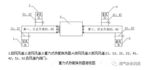 (1)該公司在12臺(tái)500KW瓦斯發(fā)電機(jī)組煙道出口各安裝一套熱管空預(yù)器,每臺(tái)瓦斯發(fā)電機(jī)組的煙氣流量為2130Nm3/h,可加熱的冷空氣流量為30000Nm3/h,空氣流通阻力小于500Pa,采用兩臺(tái)大功率(45kw)風(fēng)機(jī),將空氣集中加壓送入熱管換熱器中,熱交換后的空氣通過保溫管道和涵洞輸送到煤礦進(jìn)風(fēng)井進(jìn)入井下暖井。