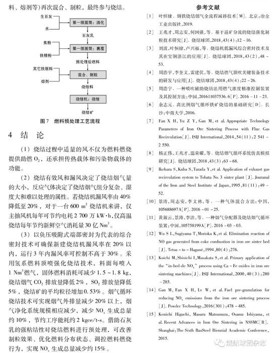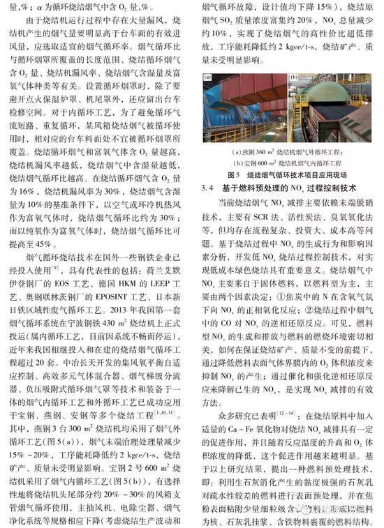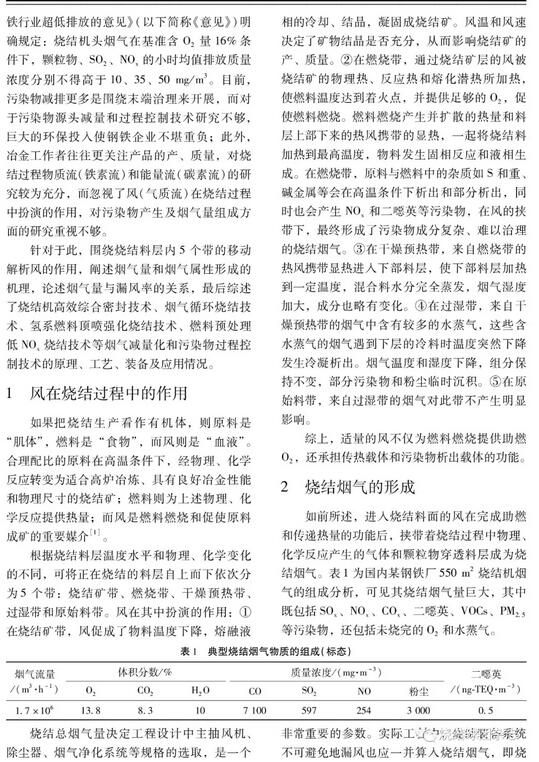 摘要:燒結(jié)工序是鋼鐵冶煉過程中高能耗、高污染的集中環(huán)節(jié),是鋼鐵行業(yè)實(shí)現(xiàn)超低排放的重點(diǎn)和難點(diǎn)。本文聚焦于“風(fēng)”對(duì)燒結(jié)生產(chǎn)的功能作用,提出了“風(fēng)”是燒結(jié)生產(chǎn)過程的“血液”的比喻,燒結(jié)風(fēng)不僅為燃料燃燒提供助燃O2,還承擔(dān)傳熱載體和污染物析出載體的功能;論述了煙氣及污染物產(chǎn)生的機(jī)理和煙氣量與漏風(fēng)率的關(guān)系,若燒結(jié)機(jī)漏風(fēng)率由40%降低至20%,則單位面積和時(shí)間內(nèi)穿過風(fēng)機(jī)的煙氣量可由94 m3/(m2·min)下降至71 m3/(m2·min)。此外,還介紹了燒結(jié)機(jī)高效綜合密封技術(shù)、煙氣循環(huán)燒結(jié)技術(shù)、氫系燃料頂噴強(qiáng)化燒結(jié)技術(shù)、燃料預(yù)處理低NOx燒結(jié)技術(shù)等燒結(jié)煙氣減量化和污染物過程控制技術(shù)的原理、工藝、裝備及應(yīng)用情況。