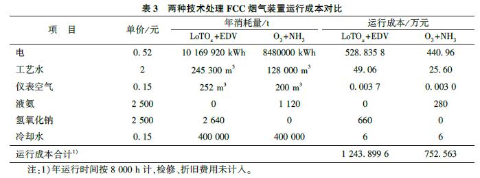表2 中,臭氧脫硝氨法脫硫裝置煙氣處理量為190 000 m3 / h,LoTOx +EDV 技術(shù)脫硫裝置煙氣處理量為200 000 m3 / h,投資對比可以看出:①工程裝置的總投資,臭氧脫硝氨法脫硫技術(shù)比LoTOx +EDV 技術(shù)少1 421. 95 萬元,占LoTOx +EDV 技術(shù)投資69%。②除臭氧脫硝氨法脫硫裝置的輔助設(shè)備比LoTOx +EDV技術(shù)高365. 87 萬元外,其他各項投資都低。