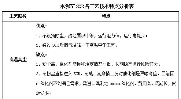 水泥窯SCR的6類工藝技術各有其特點,結合上述對比表,對各工藝進行分析,具體如下: