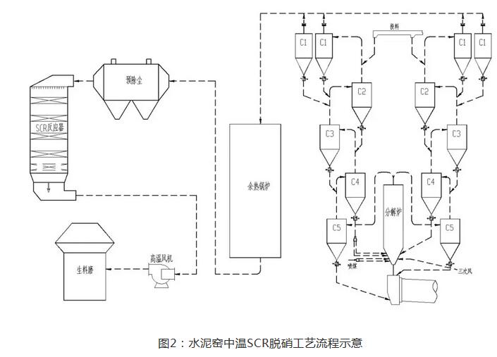 目前水泥窯SCR技術主要分為高溫高塵、高溫中塵、高溫低塵、中溫中塵、中溫低塵、低溫低塵這六種工藝路徑。