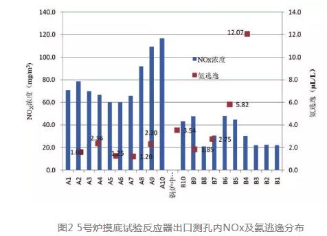在調(diào)整后的閥門開度下,進(jìn)行了5號爐噴氨優(yōu)化調(diào)整后的驗(yàn)證試驗(yàn)。試驗(yàn)結(jié)果見表2所示。