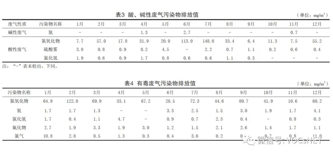 3.1 酸、堿性廢氣處置結(jié)果
