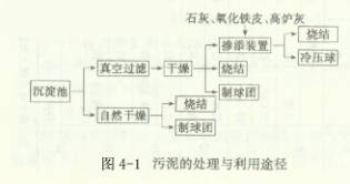 轉爐除塵廢水,經(jīng)混凝沉淀后可實現(xiàn)循環(huán)使用,但沉積在池底的污泥必須予以恰當處理,否則循環(huán)仍是空話。轉爐除塵廢水污泥含鐵達70%,有很高的利用價值。處理此種污泥與處理高爐煤氣洗滌水的瓦斯泥一樣,國內一般采用真空過濾脫水的方法,脫水性能比較差,脫水后的泥餅很難被直接利用,制成球團可直接用于煉鋼。如圖4-1所示。