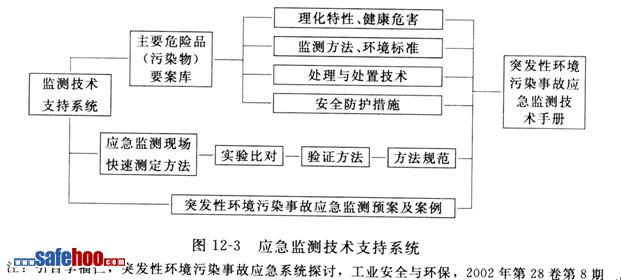 ?加強(qiáng)應(yīng)急監(jiān)測的快速反應(yīng)能力和技術(shù)水平的建設(shè),切實(shí)掌握引發(fā)突發(fā)性環(huán)境污染事故的污染源和污染物特性及環(huán)境標(biāo)準(zhǔn),建立快速監(jiān)測方法、處理處置技術(shù)和安全防護(hù)措施,制定應(yīng)急監(jiān)測方案,并在調(diào)查研究基礎(chǔ)之上,根據(jù)污染因子的特性,建立環(huán)境污染事故數(shù)據(jù)庫和查詢系統(tǒng),為應(yīng)急監(jiān)測的實(shí)施提供有效的技術(shù)支持。應(yīng)急監(jiān)測技術(shù)支持系統(tǒng)如圖所示。