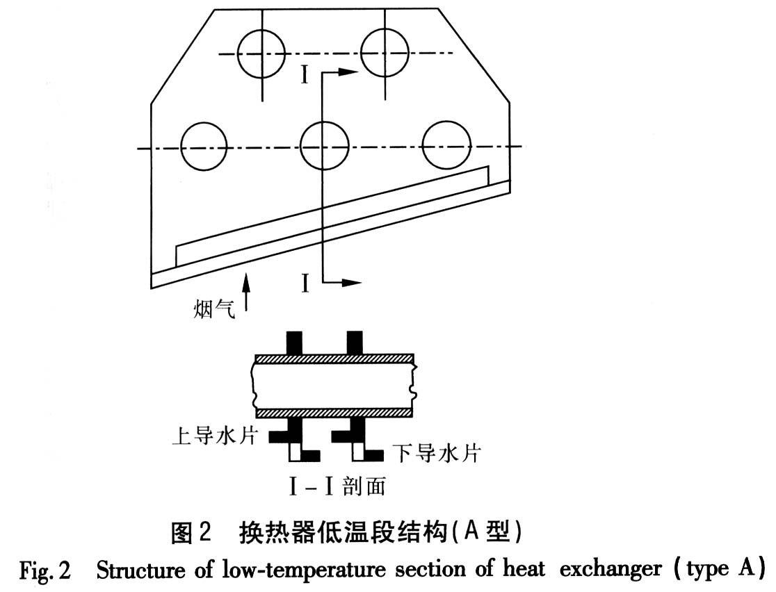??? 為了實現(xiàn)降低排煙溫度與減少過??諝饬?,在設(shè)計中需要解決兩個新的技術(shù)問題:一是防止換熱器的酸性腐蝕,二是實現(xiàn)低氧運行[2]。排煙溫度下降會導致酸性物質(zhì)冷凝并粘附在換熱器表面上,從而引發(fā)換熱器的腐蝕。因此,防腐蝕是設(shè)計冷凝式燃氣熱水器時首先要考慮的技術(shù)問題。為降低過??諝饬?,應(yīng)采用低氧運行,實現(xiàn)低氧運行的較好方法是采用完全預(yù)混燃燒方式。本文只限于討論防腐蝕問題,不涉及低氧運行。