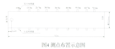 實驗和模擬一樣,天然氣濃度調(diào)至9.5%,管徑選用DN700mm的圓形管道,長度為93m,共布置9個壓力傳感器和9個火焰?zhèn)鞲衅鳌?/div>