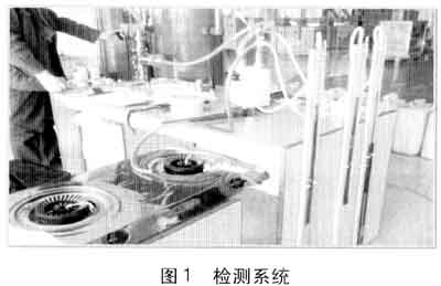 檢測工具及設(shè)備有:秒表、膠管、鐘罩1臺、U形管3只、雙眼灶具2臺、單眼灶具1臺。檢測系統(tǒng)見圖1。