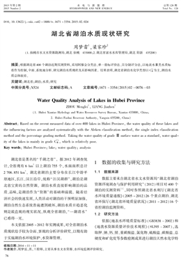 湖北省湖泊水質(zhì)現(xiàn)狀研究
