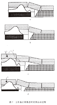 (2)顯著變化階段。這個過程從老頂斷裂前夕,即圖7-c曲線1所示狀態(tài)開始,至老頂巖層運動結束,即圖7-d曲線2所示狀態(tài)為止。此過程經(jīng)歷的時間短,老頂運動明顯,煤層應力變化劇烈,應力分布迅速集中到老頂斷裂處,且集中度達到最大;破壞煤體的完整性,緊接著應力迅速向煤層深部移動,此時煤層瓦斯涌出量大幅度增大。采空區(qū)的壓力變化要滯后于煤層的壓力變化2~4個小班,因為此時的老頂層雖斷裂但仍處于穩(wěn)定階段。隨著工作面繼續(xù)往前推進2~4m后,失去平衡迅速下沉。工作面推進距離不長,而采空區(qū)被壓實的范圍大,采空區(qū)內的瓦斯大量涌出。