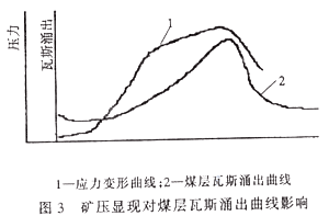 (6)礦壓顯現(xiàn)。礦壓顯現(xiàn)對瓦斯涌出速度的影響是通過改變煤層的瓦斯壓力、瓦斯存在形態(tài)及煤層孔隙特征而影響煤層瓦斯涌出速度。如圖3。