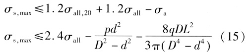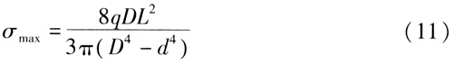 ??? 地面沉降前鋼管按受勻布荷載的等距多跨梁計算的最大彎曲應(yīng)力的計算式為[1]: