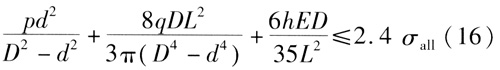 ??? 根據(jù)式(16)驗算,對于該礦區(qū)預(yù)敷設(shè)的Ф630×8管道,設(shè)計壓力為1.6MPa,總勻布荷載集度為5581N/m,支架間距為14m,不必采取預(yù)應(yīng)力安裝。但是,采取預(yù)應(yīng)力安裝,有利于提高架空敷設(shè)供熱管道運行的安全可靠性。