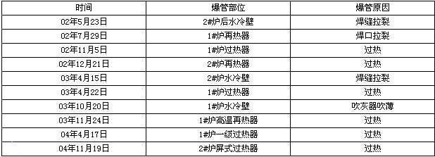 影響四管爆漏的原因很多,涉及設(shè)計、制造、安裝、安裝、檢修、運行、煤種和管理等諸多方面,而且這些因素又相互作用:因此爆管往往不是單一因素造成的,而是由幾個因素同時存在并相互作用的結(jié)果。“四管”爆破的情況統(tǒng)計如下表:【2】