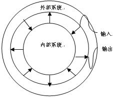 通常,根據(jù)環(huán)境與系統(tǒng)的關(guān)系,外部系統(tǒng)對內(nèi)部系統(tǒng)的影響稱為“輸入”,另一方面,內(nèi)部系統(tǒng)對外部系統(tǒng)也有干擾和影響,稱為“輸出”,如圖1所示。