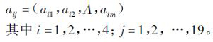 ?。?)將上述22項(xiàng)指標(biāo)中除風(fēng)質(zhì)合格率、溫度合格率、通風(fēng)機(jī)反風(fēng)靈活性$ 項(xiàng)指標(biāo)外的其它指標(biāo)按隸屬度構(gòu)造數(shù)列aij,即: