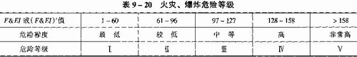 求出F&EI和(F&E1)’后,按表9—20確定其火災(zāi)、爆炸危險(xiǎn)等級(jí)。