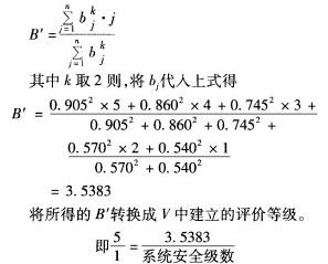 得:系統(tǒng)安全級(jí)數(shù)=0.7077,故系統(tǒng)安全等級(jí)在中等安全和較安全之間。